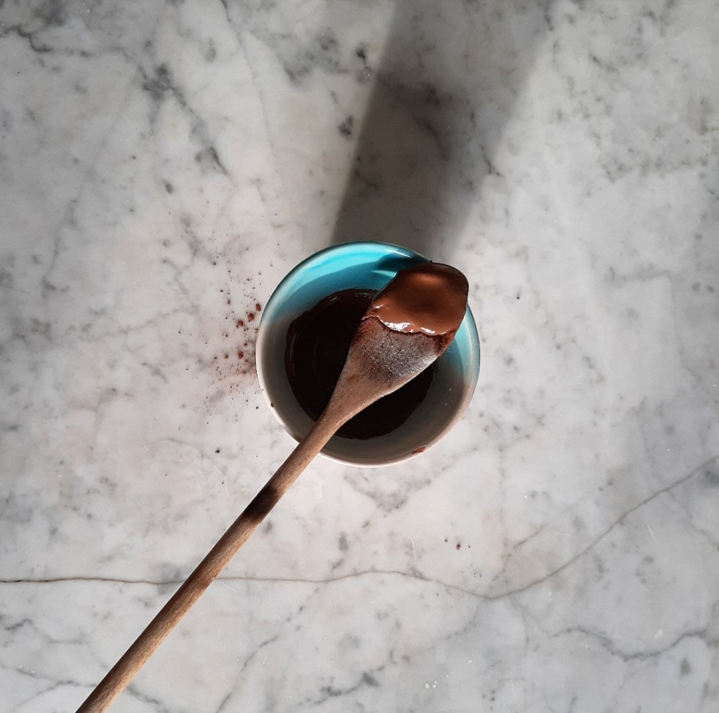 In addition to the properties of ingredients mentioned in the FIRST RECIPE, raw cacao powder contains theobromine, which is an alkaloid compound. It protects the enamel layer by preventing the formation of bacterial plaques and, therefore, cavities. It is basically a natural substitute of fluoride (which is an endocrine disruptor that can inhibit the proper functioning of the thyroid and kidneys). Plus the cacao gives your toothpaste such a pleasant smell that almost makes you eat it, and hence, you needn’t add any essential oils.