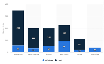 From this quantification it turns out that on our planet there are a total of 1124 platforms, suitable for the extraction of gas and oil both on land and in the ocean. The area that currently has the highest number of platforms on earth is the Middle East, while at sea the primacy is of Asia Pacific.
