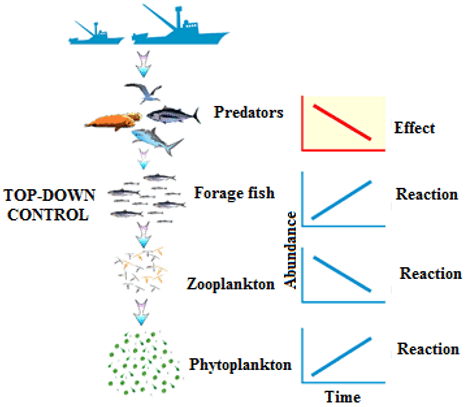 The presence of seasonality for plant biomass, and the absence of seasonality for the ichthyofauna in Cabo Pulmo indicate that the latter is relatively independent from primary productivity and could be a sign of a Top Down type control of the trophic cascade in the reef.