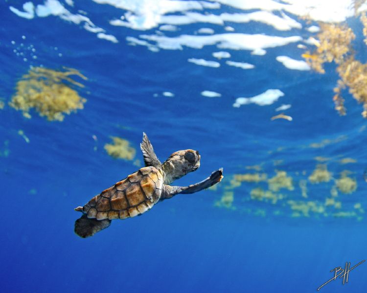 Do you remember when Marlin and Dory from the animation movie “Finding Nemo” joined a group of turtles that were drifting within a strong current to rescue Nemo? Here the picture is quite similar because between late June and early November loggerhead sea turtles with a ~ 5 cm long carapace, called hatchlings, enter the unknown ocean from the nesting beaches of North Carolina and Florida to be transported by the Gulf Stream. Years later, these turtles, now grown up to ~ 25 cm in carapace length, appear around the Azores’ seamounts.