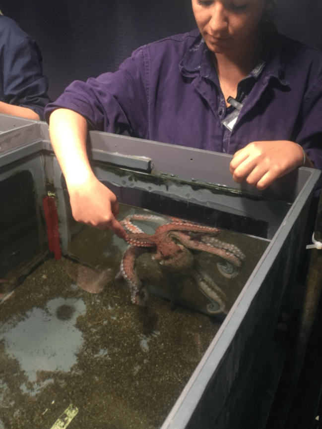 A study model is the most common octopus species, Octopus vulgaris, usually studied in captivity following an acclimatization phase in tanks. During my internship, I had the opportunity to experiment with some of the most used methodologies: